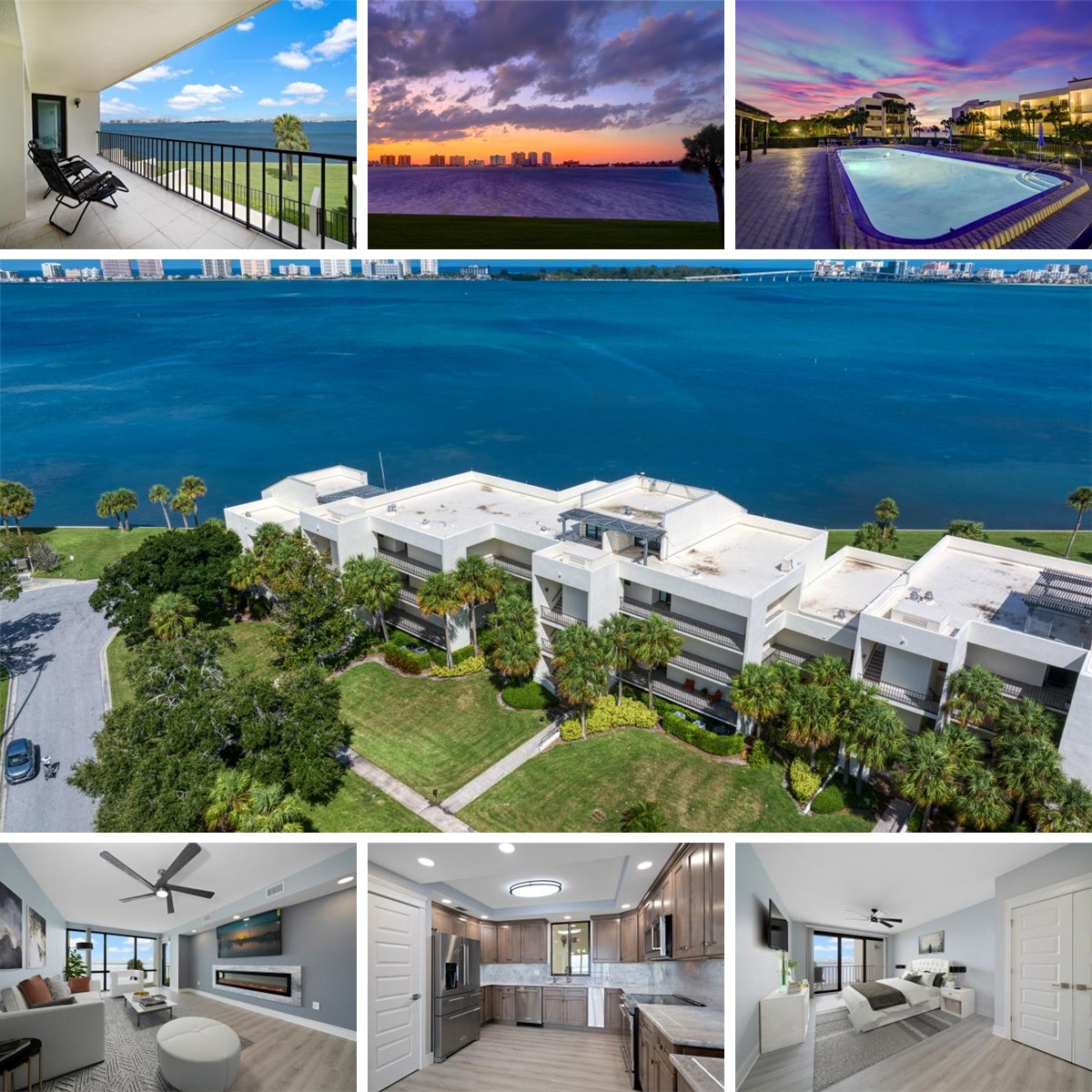 As you arrive at this 2-bedroom 2 bath condo that has been completely renovated with new HVAC including ductwork, plumbing, electrical and wind/ impact rated windows and doors. Inside, high-end designer finishes enhance the open floor plan, with beautiful floors flowing throughout. The gorgeous kitchen features quartz counters, soft-close cabinets, a movable island, pantry, and stainless-steel KitchenAid appliances. The dining and family room combo is filled with natural light and boasts floor-to-ceiling windows, stylish lighting, a linear fireplace, and access to a private balcony, perfect for al fresco dining. From here, enjoy breathtaking views of seabirds, dolphins, boats, and nighttime vistas of Sand Key and Memorial Causeway bridges, perfect for watching fireworks on the Fourth of July. The luxurious primary suite offers ample closet space and sliders that highlight the spectacular Intracoastal views. Its spa-like ensuite includes a double sink vanity with quartzite counters and custom walk-in shower. The additional bedroom is filled with natural light from sliders leading to the balcony, while the spacious guest bathroom features a double sink vanity and a custom walk-in shower. The indoor laundry room provides extra storage and a sink for added convenience. A community pool and rec center are centrally located making outdoor relaxation and entertainment a breeze. Ideally located close to Belleair Country Club, The Pelican Club, boutique shops, local restaurants, two airports, and the area's sparkling white sand beaches. Don’t miss this opportunity to make this contemporary coastal retreat your own.